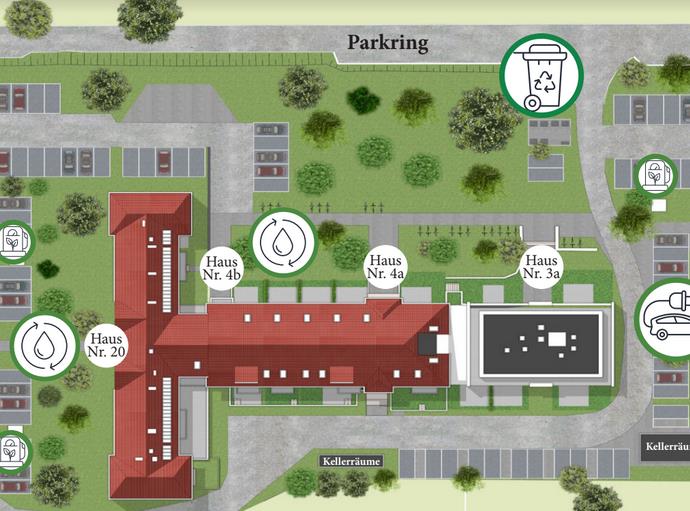 Durch unsere durchdachte und ökologische Bauweise reduzieren wir nicht nur die CO2 Emissionen, sondern verringern auch unseren CO2-Fußabdruck. Zukunftsorientierte Lösungen, wie z.B die Dachbegrünung oder optional Solardächer sowie Innovationen, wie eine nachhaltige Wärmeversorgung, sind uns bei unseren Objekten sehr wichtig. Es wird stets auf zertifizierte, schadstoffarme, hochwertige Baumaterialien gesetzt. Dabei wird das Verpackungsmaterial so gut wie möglich reduziert oder recycelt. Beim Projekt Parkensemble Wünsdorf ist bereits ein großer Altbau vorhanden, der denkmalgerecht und sorgfältig saniert wird. Dadurch können ebenfalls Baumaterialien eingespart werden, da viele vorhandene Elemente wie zum Beispiel Wände, Treppen oder Fenster teilweise aufgearbeitet werden können und nicht komplett neu ersetzt werden müssen. Bei allen nicht ersetzbaren Bauelementen sorgen wir für eine entsprechende umweltbewusste Entsorgung.